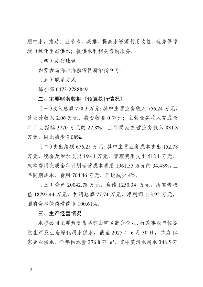 - 2025-03-10烏海市水務(wù)投資有限責(zé)任公司2024年度信息公開(kāi)報(bào)告