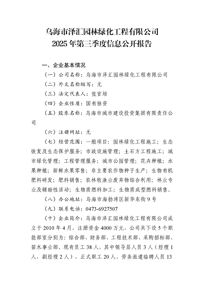 - 2025-03-10烏海市澤匯園林綠化工程有限公司2024年度信息公開(kāi)報(bào)告