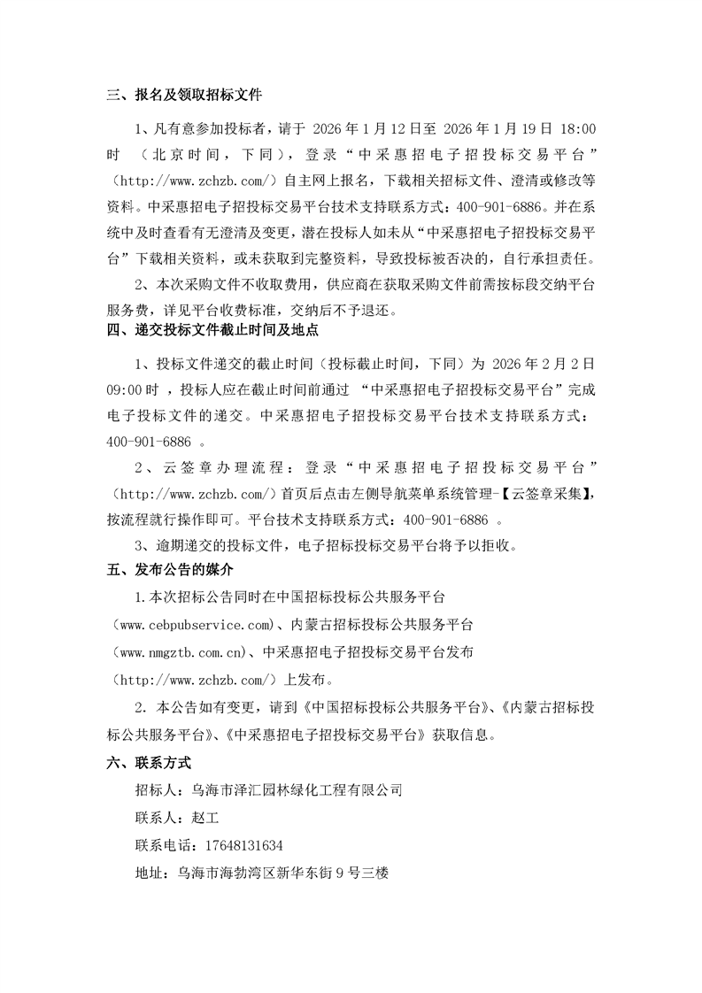 - 2026-03-112026年烏海市澤匯園林綠化工程有限公司管件采購項目比選采購公告