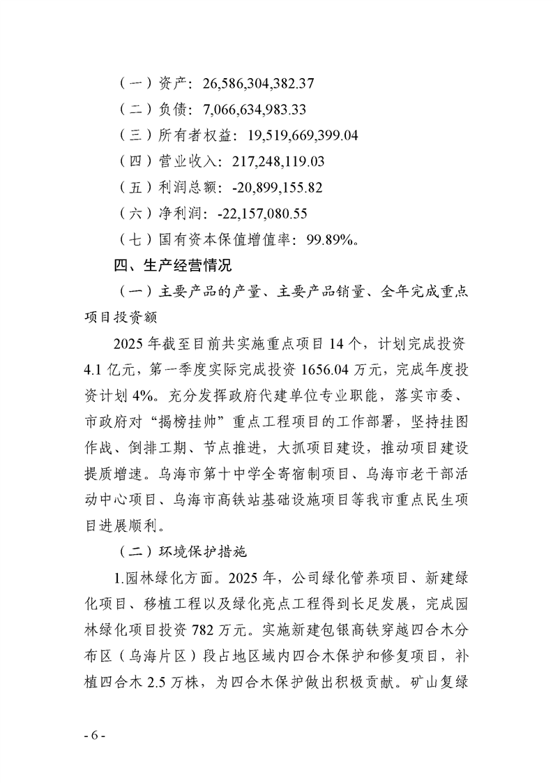 烏海市城市建設(shè)投資集團(tuán)有限責(zé)任公司 2025年度第一季度信息公開報(bào)告