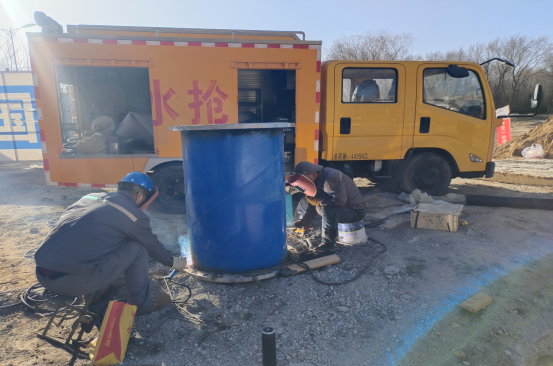 電焊組的師傅們頭戴面罩,手持焊槍,瞬間火花四濺,在黑暗中綻放出奪目光芒,熟練地進(jìn)行切割與焊接工作,其他人員則全力投入到拆卸工作中,他們齊心協(xié)力,將DN800蝶閥、DN800鑄鐵乙管、三通、伸縮器等部件逐一拆卸。盡管汗水濕透了衣衫,雙手被工具磨出了水泡,但沒有一個人喊累,所有人的目光都堅(jiān)定地聚焦在搶修任務(wù)上。