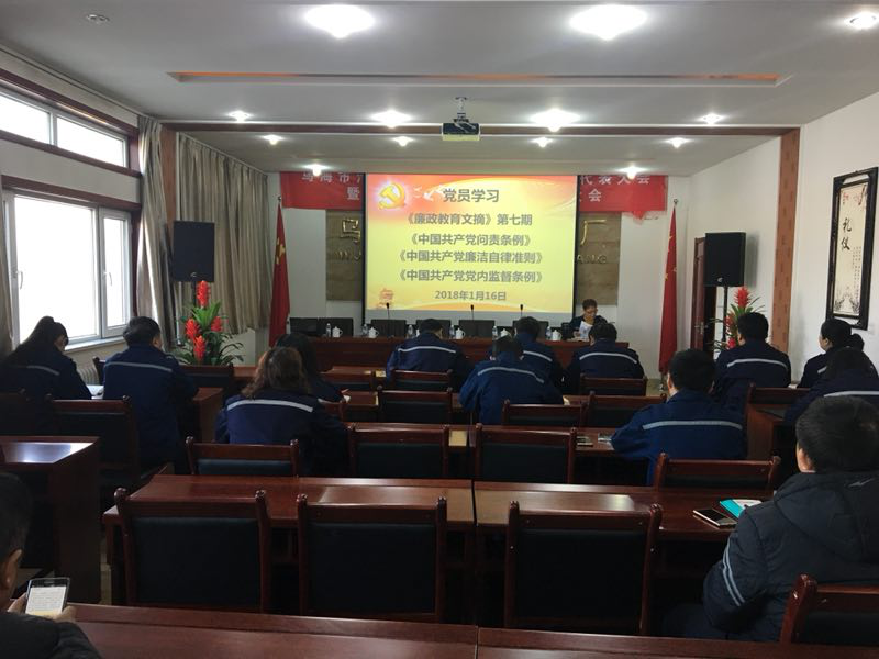 烏海市污水處理廠黨支部于2018年1月16日組織全體黨員干部認(rèn)真學(xué)習(xí)了《中國共產(chǎn)黨黨內(nèi)監(jiān)督條例》《中國共產(chǎn)黨問責(zé)條例》《中國共產(chǎn)黨紀(jì)律處分條例》《中國共產(chǎn)黨廉潔自律準(zhǔn)則》《八項(xiàng)規(guī)定》《自治區(qū)28項(xiàng)配套規(guī)定》《領(lǐng)導(dǎo)干部教育文摘——第九期》等內(nèi)容,通過學(xué)習(xí),使我廠黨員干部的黨性修養(yǎng)有了進(jìn)一步的提升。